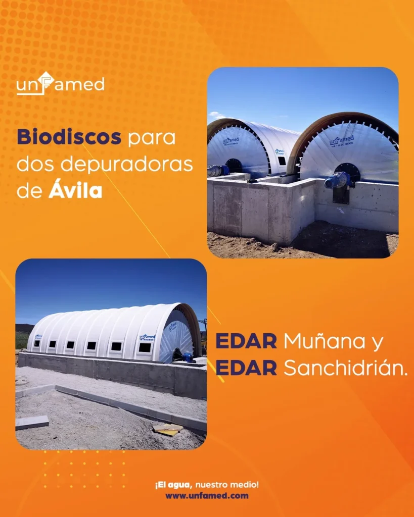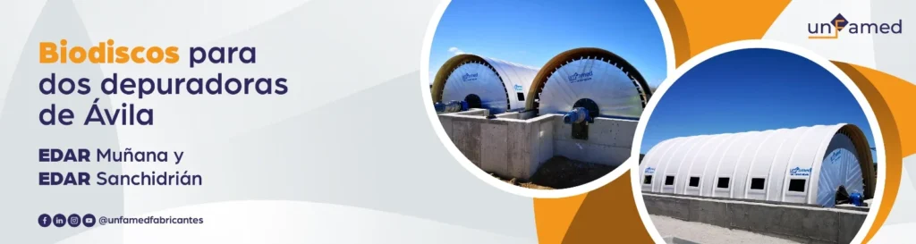 La EDAR de Sanchidrián estará equipada con dos biodiscos modelo 295-550-3, mientras que la EDAR de Muñana llevará un biodisco modelo 360-550-3, todos ellos fabricados y diseñados por Unfamed.